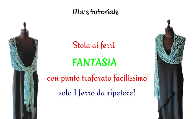 Per realizzare questa stola io ho usato 150 grammi di un filato tipo fettuccia.